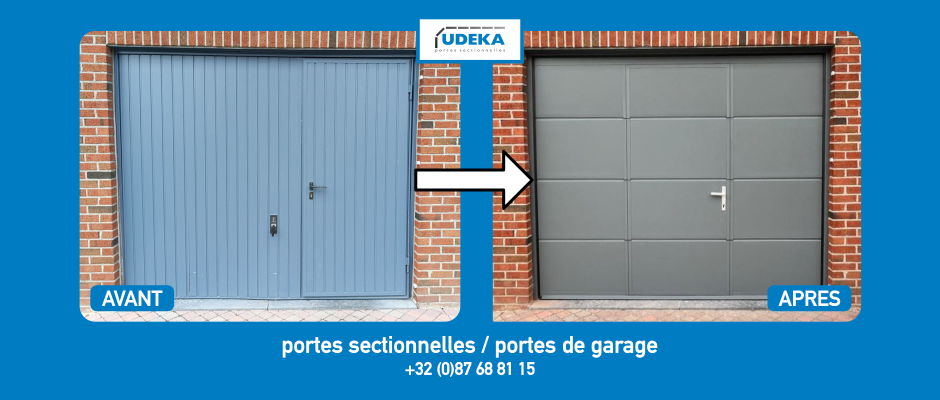 Avant/Après impressionnant à Froidthier !Pose d’une porte sectionnelle ADK en RAL 7016, finition Stucco Geprofileerd, en remplacement d’une ancienne porte usée. Le résultat parle de lui-même. #RenovationExtérieure #PorteADK #StyleEtFonction